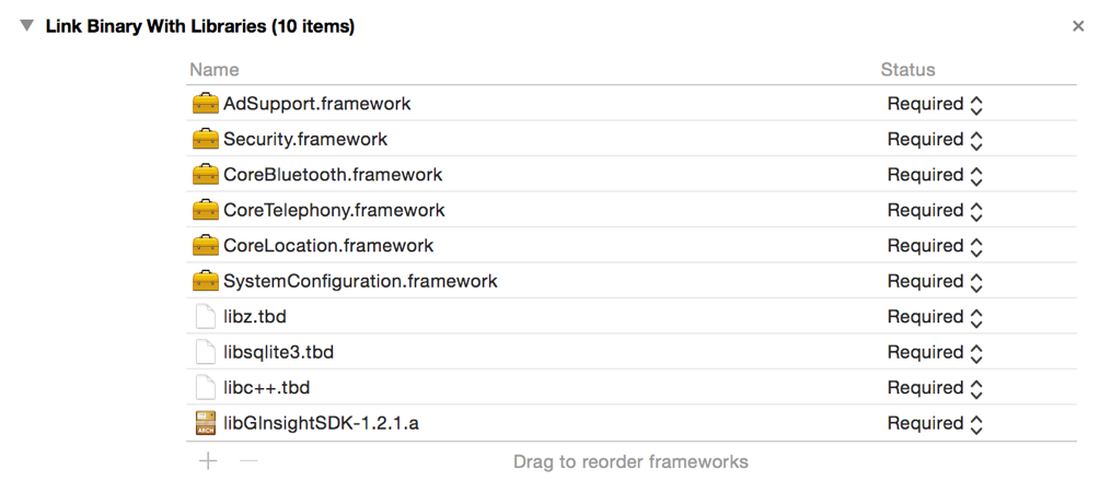 导入GInsight SDK和相应Framework